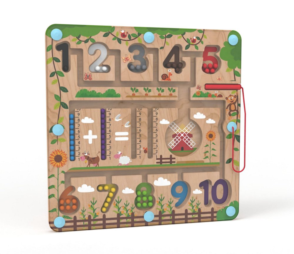 Vydejte se na cestu přírodou s barevnými kuličkami. Provedete úspěšně různobarevné kuličky všemi zákoutími? Umístíte všechny do mlýna? Vejdou se tam? Nebo pomocí čísel na metru vytvoříte a vypočítáte příklad? K vedení kuliček se při hře využívá magnetické ukazovátko, které prověří dětskou trpělivost a koordinaci rukou a zraku. Dokážete pak navrátit kuličky zpět na své místo podle barvy? Je počet kuliček stejný jako číslo, do kterého jste je umístili? Zábavná dřevěná hra, která pomáhá dětem rozvíjet jemnou motoriku, orientovat se v prostoru a rozšiřovat slovní zásobu pojmenováváním barev a předmětů ve městě. Děti se také učí počítání zábavnou formou. Dřevěná základna v designu přírody je kryta odolnou průhlednou plastovou deskou, hračka je díky tomu bezpečná. Hlavní vlastnosti: úvod do světa počtůrozvíjí motorické dovednosti dětí zábavné i bezpečné díky magnetickému principu
