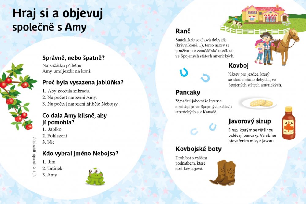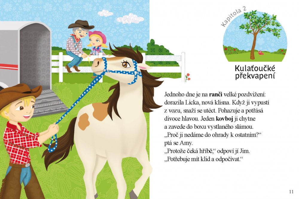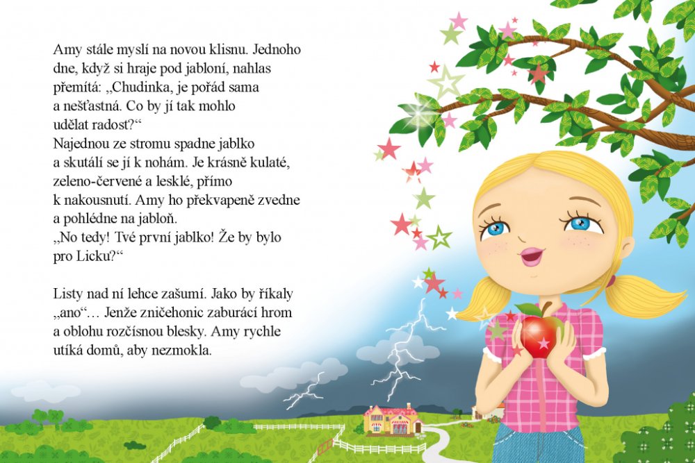 Amy žije na ranči ve Spojených státech amerických. Má však jeden problém: bojí se nasednout na koně. Všichni se ji snaží přesvědčit, že to nic není, ale marně. Vypráví o tom své jablůňce, která ještě nikdy neurodila žádné jablíčko. Jednoho dne dorazí na ranč nová klisna. Čeká hříbátko, ale nastanou komplikace. Amy za pomoci prvního plodu ze svého stromku klisnu i s hříbátkem zachrání. Na hřebečku Nebojsovi se pak naučí skvěle jezdit a jablůňka je od té doby obsypaná jablky.