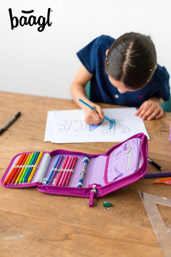 • Klasický školní jednopatrový penál s dvěma chlopněmi.