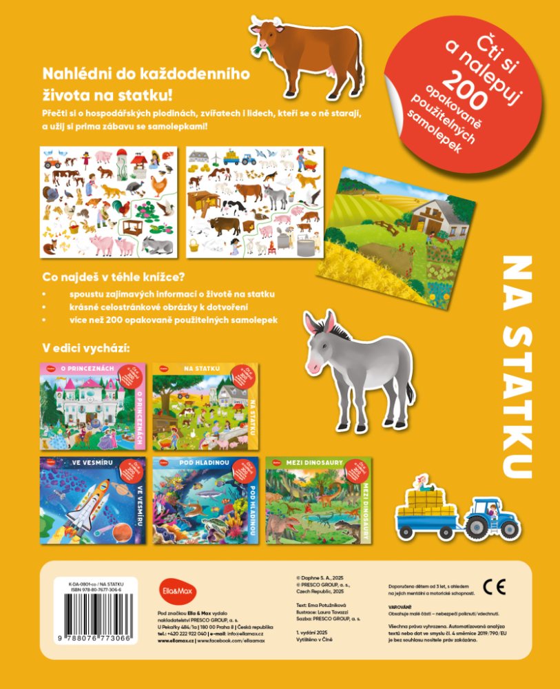 Užijte si spoustu zábavy s úžasnými adhezivními samolepkami, díky nimž stvoříte svůj vlastní venkovský svět! V téhle knížce jich objevíte více než dvě stovky a můžete s jejich pomocí donekonečna dotvářet překrásné celostránkové obrázky, k nimž samolepky jednoduše přilnou. Vedle toho tu najdete také poutavý text plný zajímavých informací o každodenním životě na statku. Zavítáte do světa hospodářských zvířat, plodin a lidí, kteří se o ně starají.