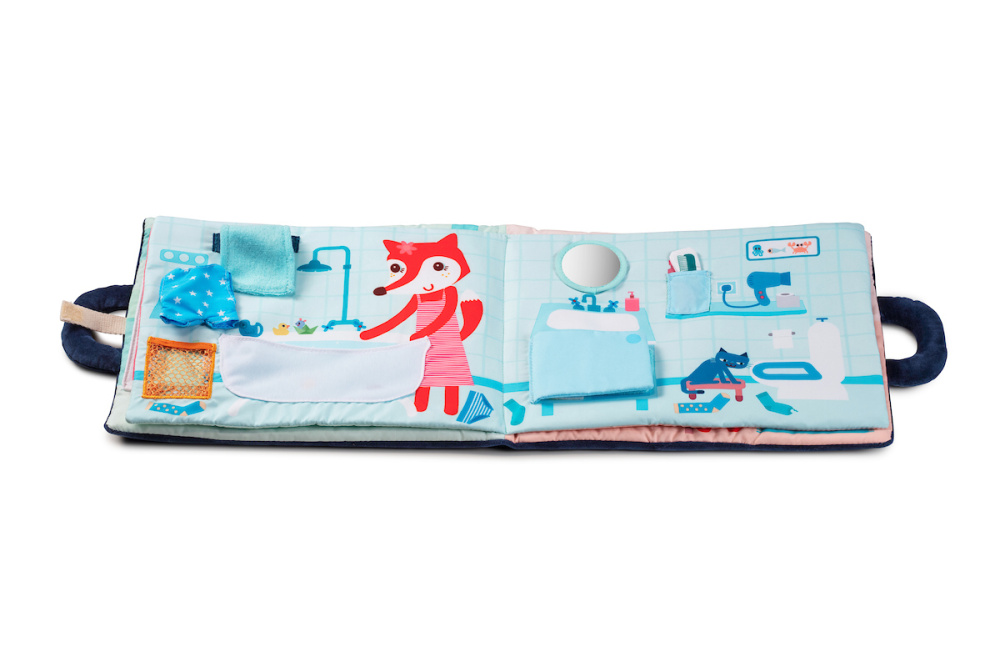 Krásná textilní knížka pro děti od 18 měsíců je měkká a plná podnětů. Knížka s liškou Alicí naučí děti dobře známé činnosti před spaním. Stránku po stránce doprovázejí děti lišku Alici její přípravou na spánek. Součástí knížky je i malá figurka lišky. Rozměry knížky jsou 28 x 22 cm. Lze prát v pračce na jemný cyklus při 30°C. Vyrobeno ze 100% polyesteru.