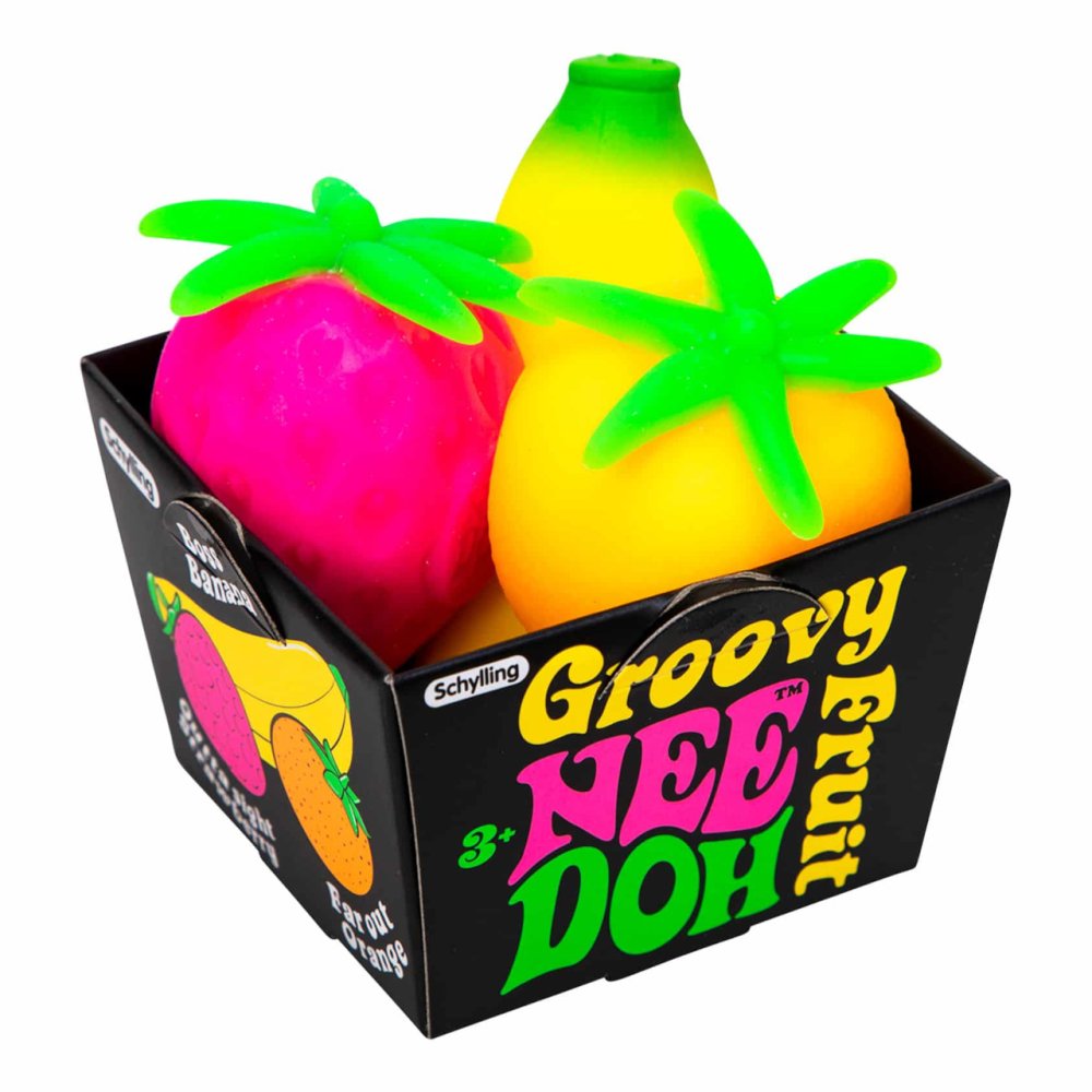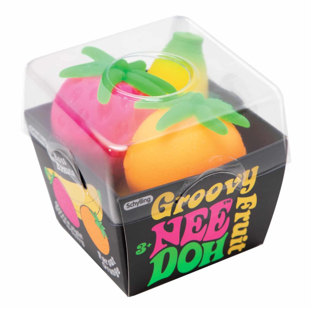 Neobyeejné ovoce, které lze maekat, natahovat a ?moulat. Ideální antistresová pomucka nejen pro diti. Vyu?ijete ji na jako zábavu na cestách, ve ?kole i v praci. Pomu?e vám k úlevi od úzkosti. Nee Doh je vyroben z netoxického materiálu podobného tistu, který se v?dy vrátí do puvodního tvaru. Groovy Fruit také pomáhá ditem soustoedit se a udr?et pozornost. Hraeku doporueujeme pro osoby s ADD, ADHD, OCD, autismem a úzkostí
