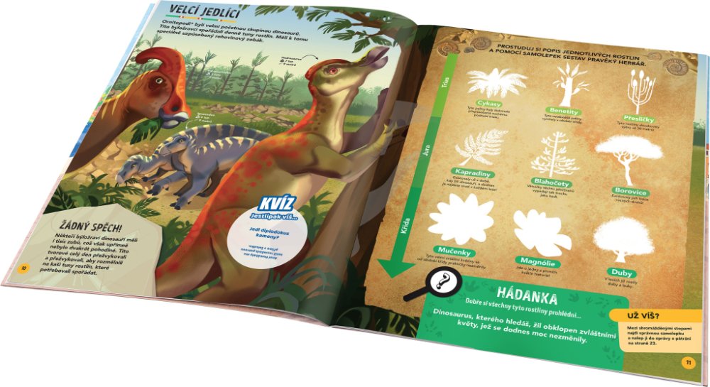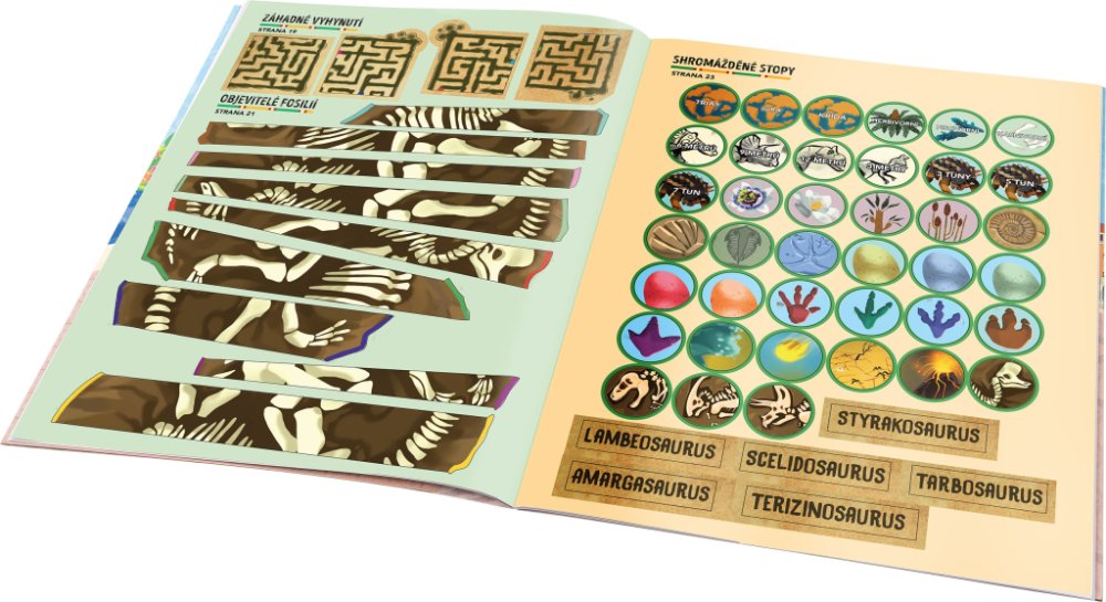 Vydejte se na dobrodružnou misi s krycím názvem DINOSAUŘI! Akademie záhad, jež řeší hádanky staré stovky, tisíce, ba miliony let, má pro vás zapeklitý případ. Tamní vědci objevili tajemné vejce, které podle prvních výsledků bádání patřilo jednomu z proslulých prehistorických stvoření. Pokračujte v paleontologickém šetření, identifikujte stopy zanechané dinosaury, sbírejte indicie… Jen pokud se dokážete úspěšně popasovat se všemi rébusy, kvízy a úkoly, zjistíte, komu nalezené vejce patřilo! Máte na to přes 250 samolepek, a navíc spoustu poutavých informací a zajímavostí z historie.