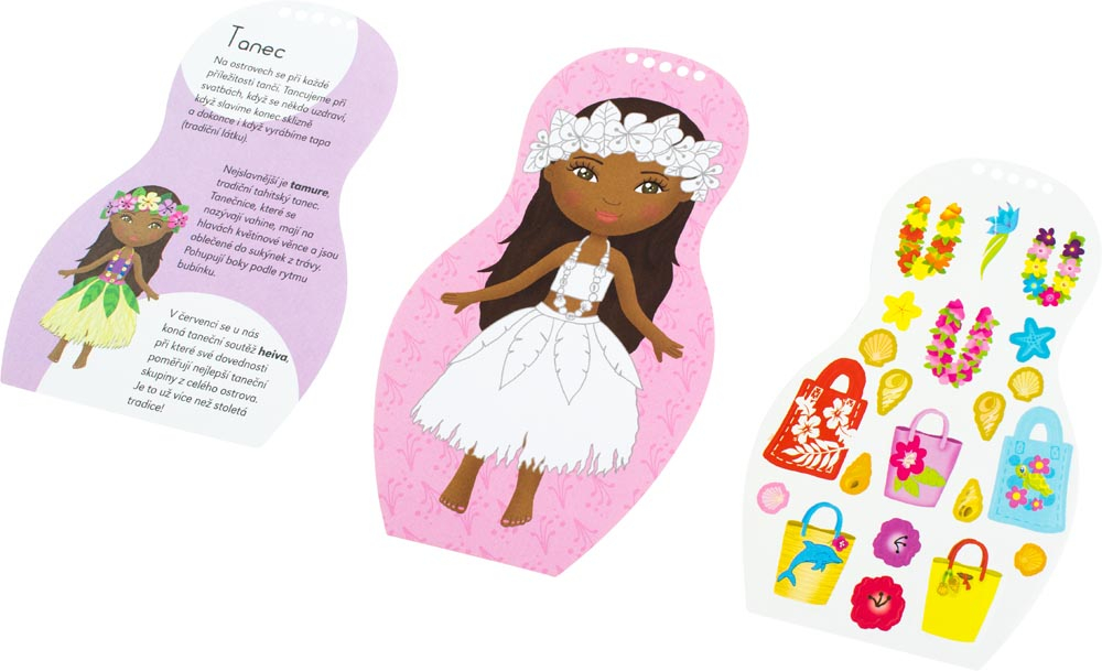 Kreativní omalovánky, vzory, samolepky… tyto knížky obsahují vše, co je třeba k vytváření nesčetných modelů podle módy jednotlivých kultur. Tradicemi inspirované náměty podněcují fantazii, a k tomu se děti dozvědí i pár zajímavých informací navrch! Jak jejich vrstevníci z blízkých i vzdálených zemí bydlí, jak se učí a baví, na jakých specialitách si pochutnávají. Vydejte se na objevitelské výpravy do vzdálených koutů světa!
