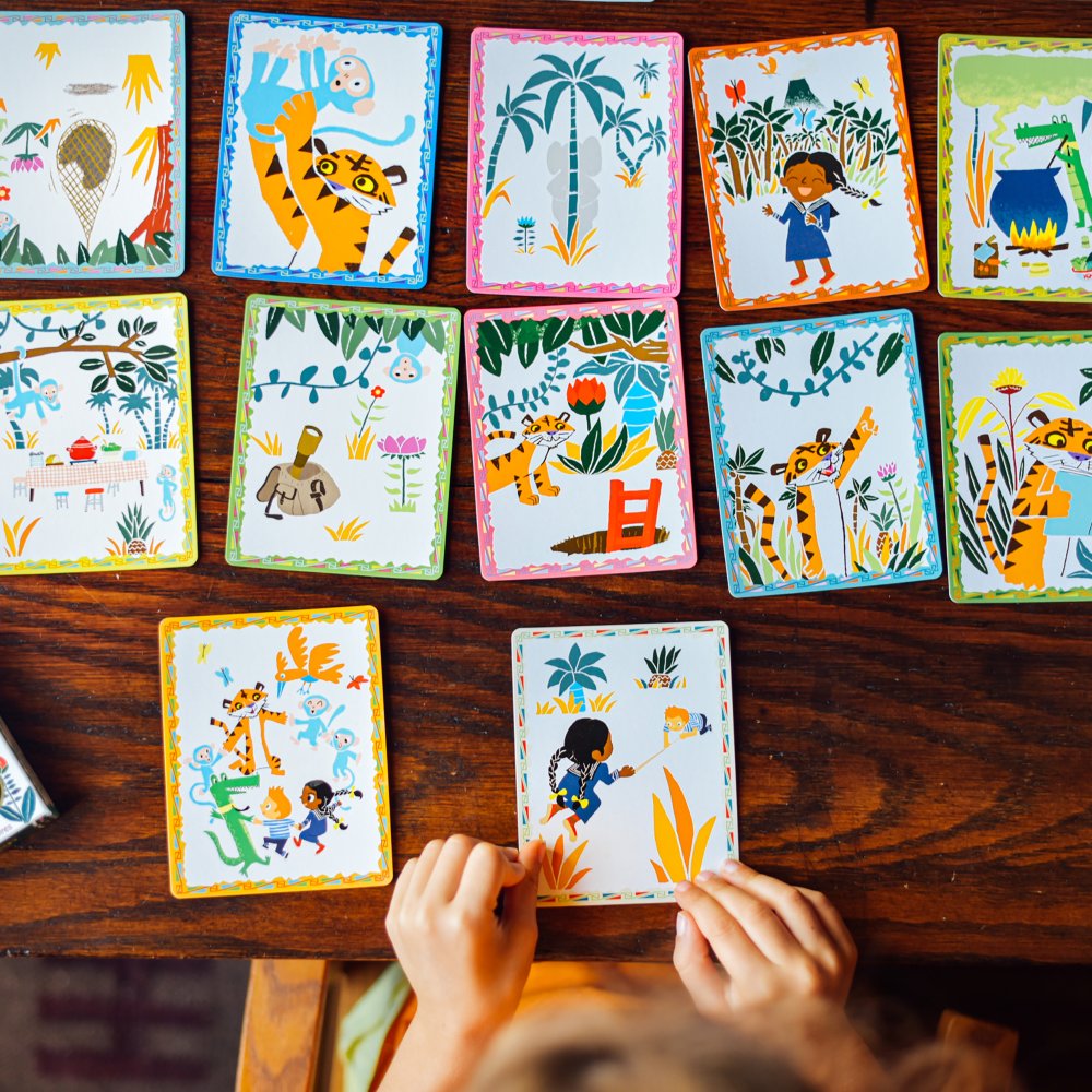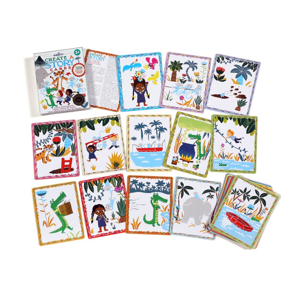 S těmito kartami mohou děti sestavovat a vymýšlet vlastní příběhy a rozvíjet tak svoji fantazii. Vypravěč si může vybrat kolik karet jen bude chtít. Stačí dvě, ale může jich býti více. Například 3 karty - jedna pro úvod, druhá pro příběh a třetí pro ukončení. Můžete vymýšlet nejrůznější kombinace postav, rekvizit a míst dle vlastní fantazie a momentální inspirace z obrázkových karet. S touto sadou si mohou děti vytvořit vlastní pohádku s kouzelnými postavami.