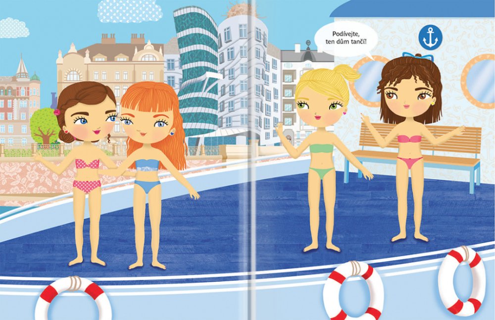 Objevujte českou kulturu s panenkou Eliškou! Anebo byste raději jako průvodkyni po vlasti zvolili Aničku, Adélku, případně Viktorku? Vyberte si panenku podle vlastního vkusu - každá z nich vás vezme na nejznámější místa našeho hlavního města Prahy, navštívíte spolu folklorní vystoupení, ples, podniknete túru, výlet na pohádkový zámek Hluboká, budete kempovat u Máchova jezera a v zimě si zalyžujte v Krkonoších. S více než 300 samolepkami a překrásnými obrázky je objevování jedna radost! Titul ze série, která patří k našim nejprodávanějším, přibližuje malým čtenářům tím nejjednodušším a zároveň hravým způsobem něco z kultury naší země a představuje jim známá místa a české památky.