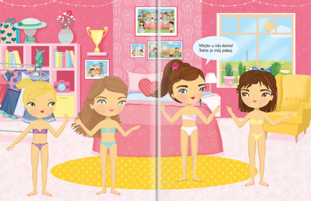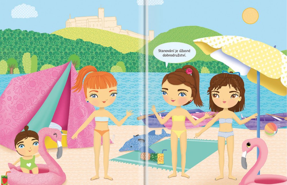 Objevujte českou kulturu s panenkou Eliškou! Anebo byste raději jako průvodkyni po vlasti zvolili Aničku, Adélku, případně Viktorku? Vyberte si panenku podle vlastního vkusu - každá z nich vás vezme na nejznámější místa našeho hlavního města Prahy, navštívíte spolu folklorní vystoupení, ples, podniknete túru, výlet na pohádkový zámek Hluboká, budete kempovat u Máchova jezera a v zimě si zalyžujte v Krkonoších. S více než 300 samolepkami a překrásnými obrázky je objevování jedna radost! Titul ze série, která patří k našim nejprodávanějším, přibližuje malým čtenářům tím nejjednodušším a zároveň hravým způsobem něco z kultury naší země a představuje jim známá místa a české památky.