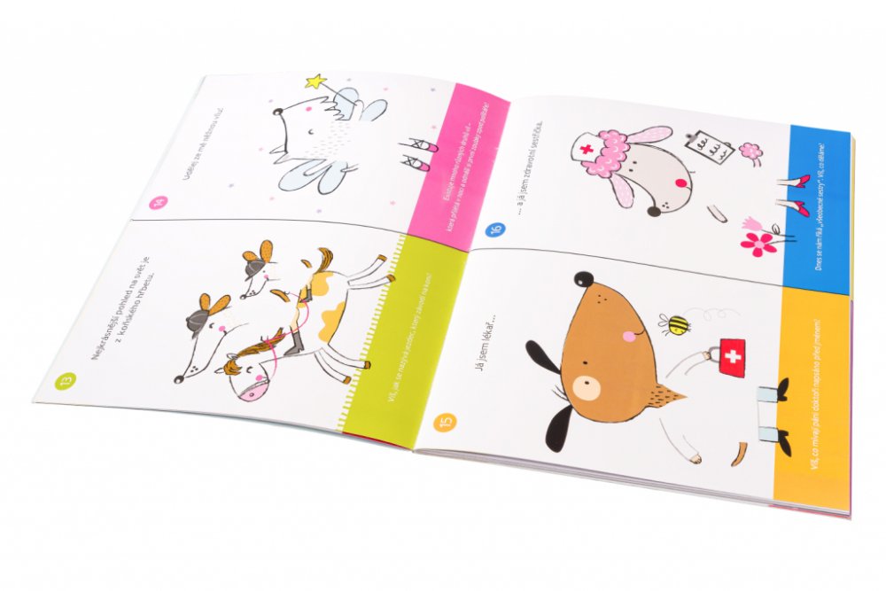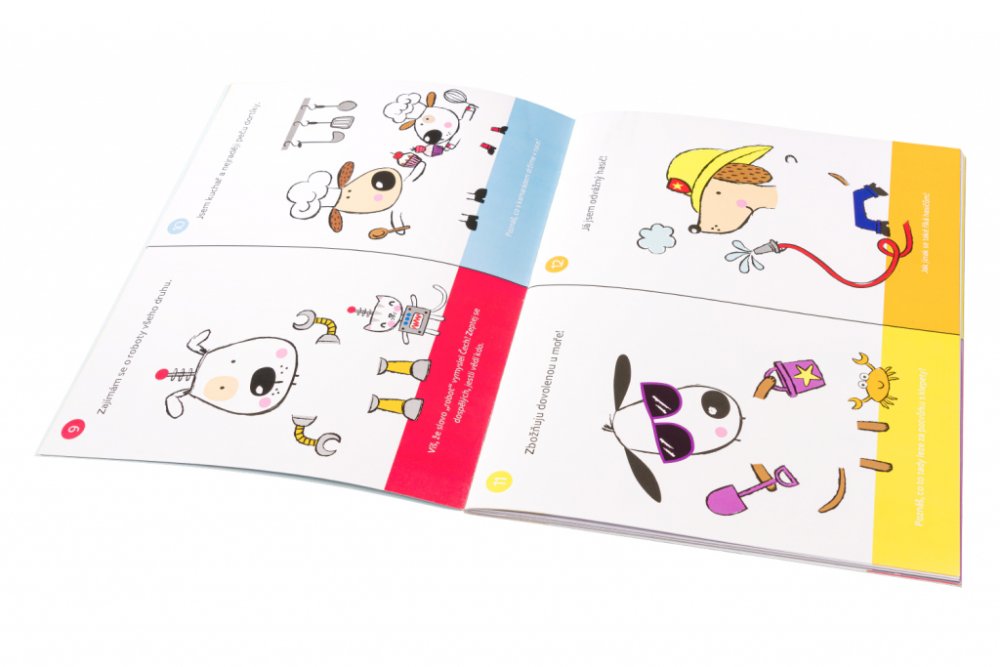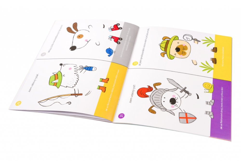 Pojmenujte roztomilé pejsky, vyberte správné samolepky a oblékněte je podle toho, co mají rádi nebo čemu se věnují. A nezapomeňte zodpovědět naše otázky! Pokud si snad nebudete vědět rady, nic se neděje: v knížce najdete i správné odpovědi. Až z vás budou psí odborníci, můžete si nakreslit vlastní zvířátko a doplnit jeho obrázek vším, co potřebuje, aby bylo mezi ostatními spokojené. Třeba i nějakou záludnou otázkou a správnou odpovědí!
