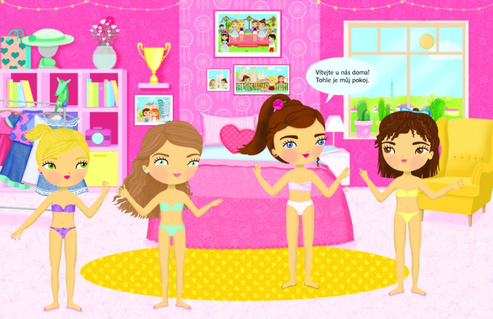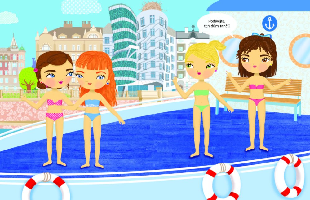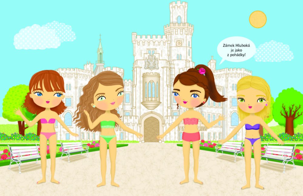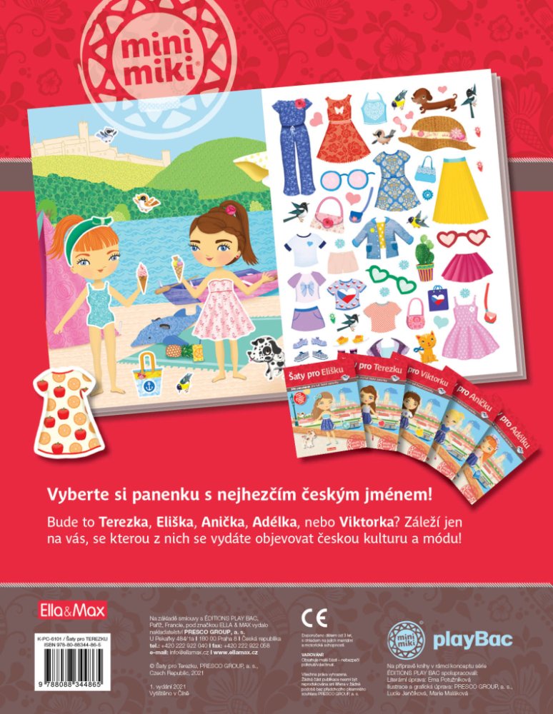 Objevujte českou kulturu s panenkou Eliškou! Anebo byste raději jako průvodkyni po vlasti zvolili Aničku, Adélku, případně Viktorku? Vyberte si panenku podle vlastního vkusu - každá z nich vás vezme na nejznámější místa našeho hlavního města Prahy, navštívíte spolu folklorní vystoupení, ples, podniknete túru, výlet na pohádkový zámek Hluboká, budete kempovat u Máchova jezera a v zimě si zalyžujte v Krkonoších. S více než 300 samolepkami a překrásnými obrázky je objevování jedna radost! Titul ze série, která patří k našim nejprodávanějším, přibližuje malým čtenářům tím nejjednodušším a zároveň hravým způsobem něco z kultury naší země a představuje jim známá místa a české památky.