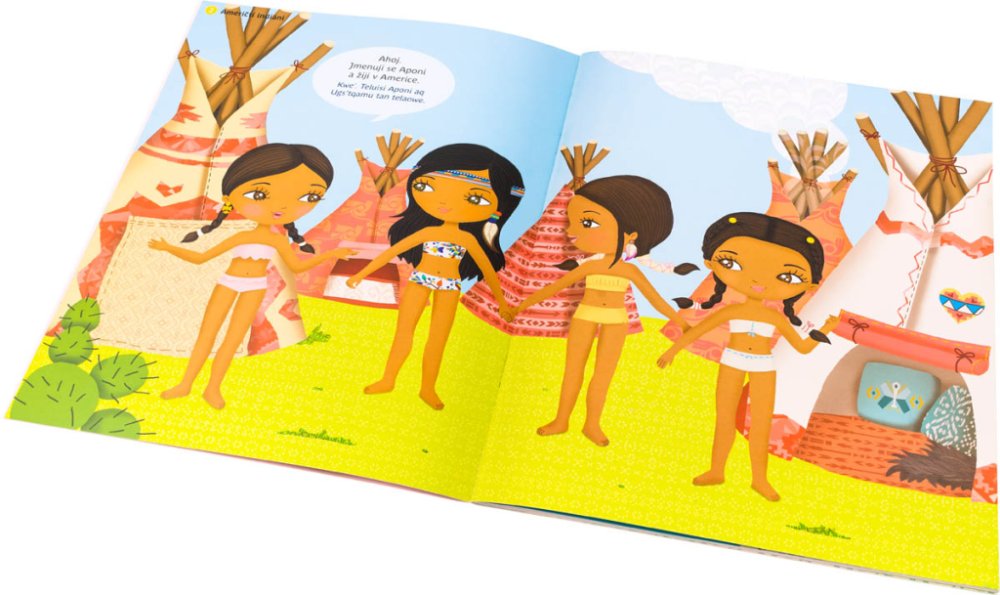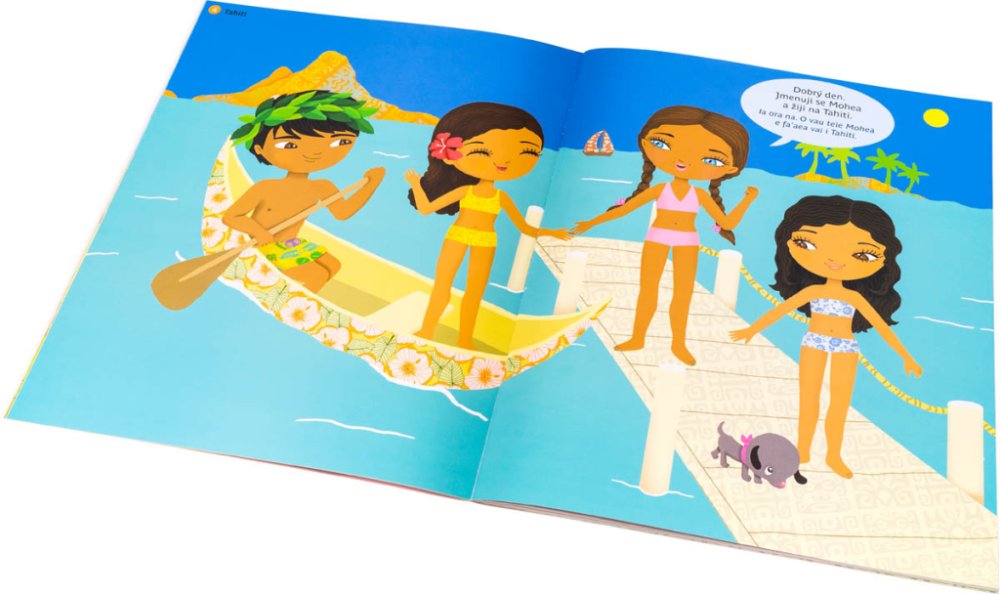 Tato série představuje nejmenším tahitskou, španělskou, indiánskou či eskymáckou kulturu. Děti zábavnou formou získají a zpřesní si své představy o cizích zemích a jejich obyvatelích. V každé knížce objeví 300 samolepek a řadu obrázků zkušené ilustrátorky a vystudované stylistky Julie Camel, která svým postavičkám, jejich oděvům i kulisám vdechla autenticitu. Velkou zajímavostí jsou v neposlední řadě i dvojjazyčné texty v obrázcích, díky nimž bude pro malé čtenáře poznávání ještě zajímavější a komplexnější.