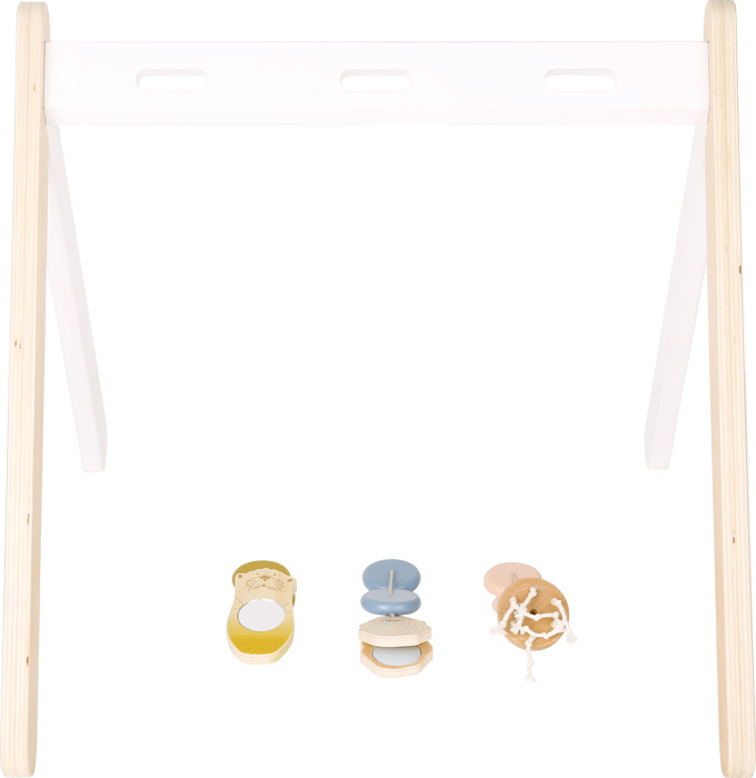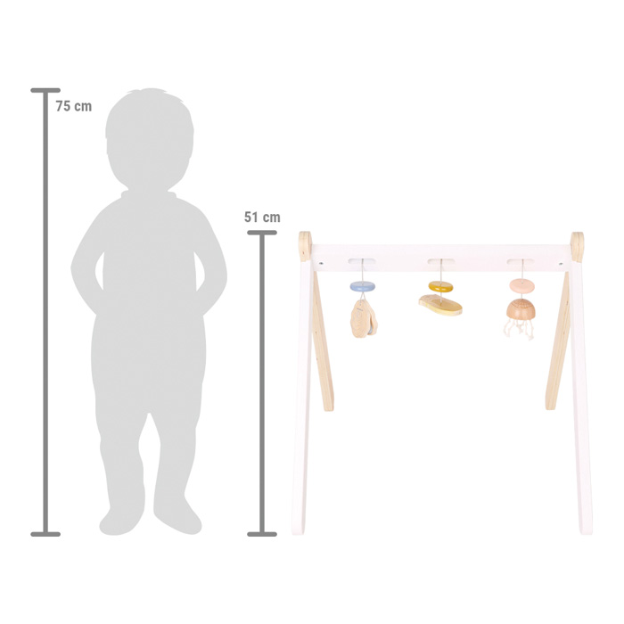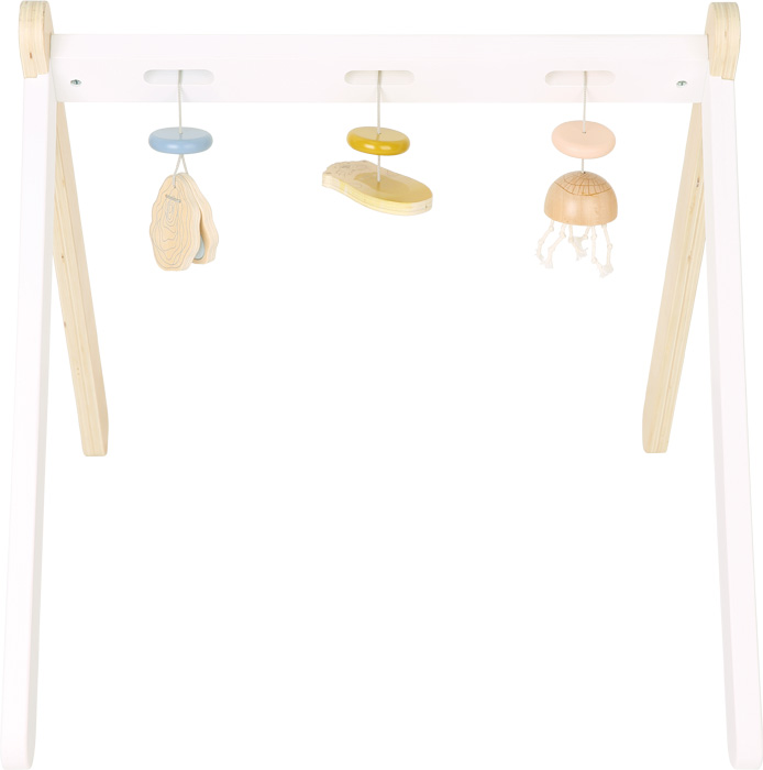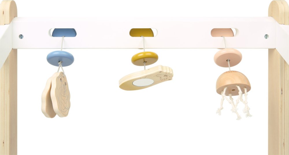 Mořské vydry, ústřici a medúzu lze připevnit do tří prohlubní bez nářadí tím, že je „protlačíme“ připravenými otvory. Trojrozměrné herní prvky jsou zvláště dobře viditelné pro ležící miminka. Hrazdičku lze rychle a snadno sestavit pomocí dvou šroubů.
