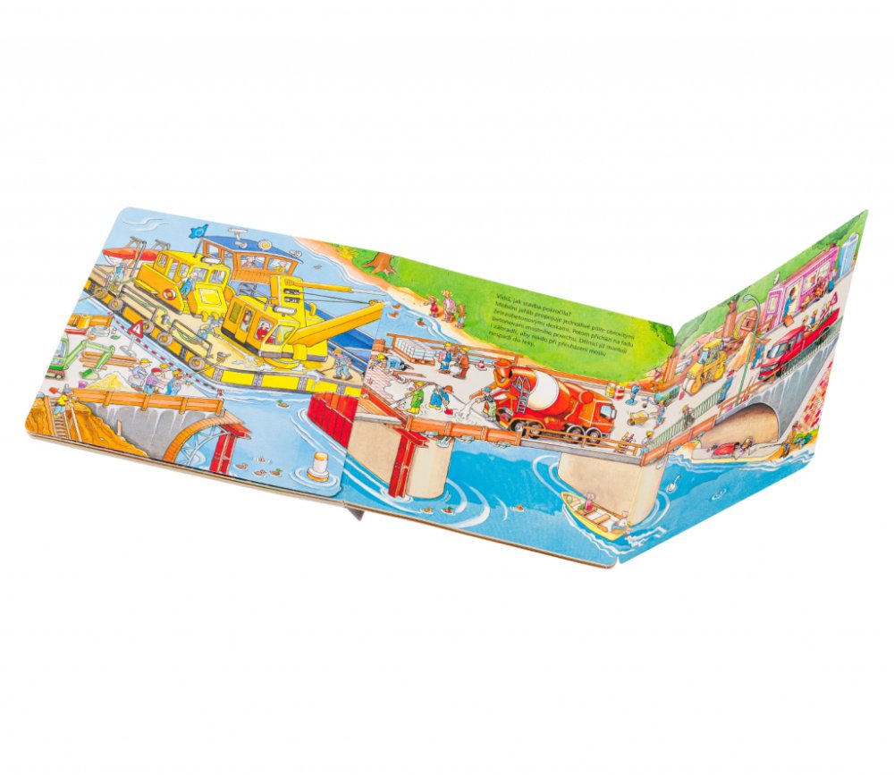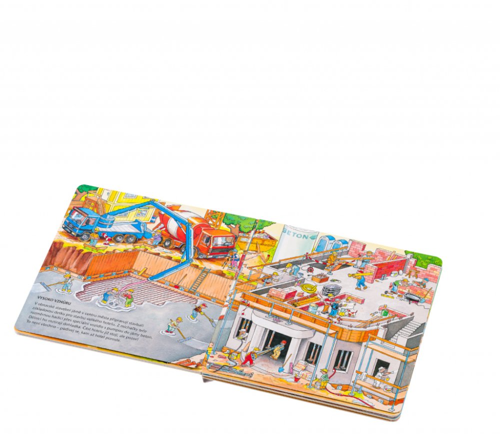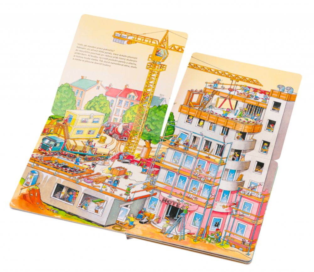 V této knížce navštívíte stavbu výškové budovy nového hotelu, zúčastníte se prací na stavbě mostu přes řeku a podíváte se hluboko pod zem, jak vzniká tunel metra. Tak hurá na stavbu!