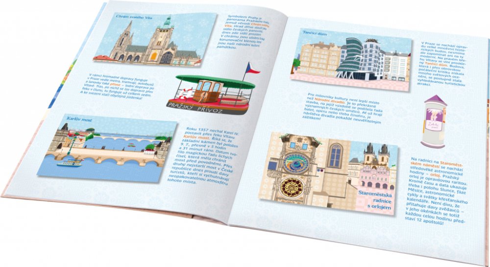 Oblíbená série minimiky přichází s další novinkou v podobě zábavné samolepkové knížky, v níž budou děti společně s panenkou Terezkou a jejími kamarádkami Kačkou a Aničkou objevovat nejznámější kouty našeho hlavního města Prahy, jedné z nejkrásnějších evropských metropolí. Známé pražské scenerie mohou děti doplňovat spoustou krásných samolepek podle vlastní fantazie a v knížce najdou také mnoho zajímavých informací o zdejších památkách, známých místech, ale také třeba o české kultuře.