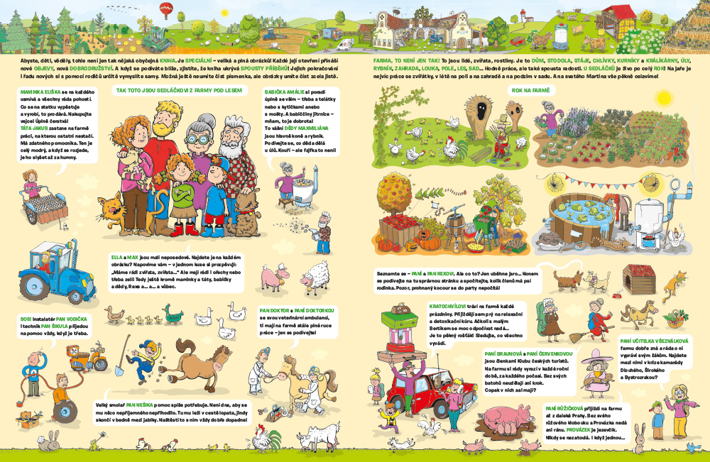 VÍTEJTE NA FARMĚ U SEDLÁČKŮ! Jakže to na takové farmě chodí? Inu, stále je tu co dělat a pořád se něco zajímavého děje. S malými neposedy Ellou a Maxem se ocitnete přímo v centru dění. Děti tu ovšem nejsou samy – sledujte, co zrovna dělají všechna ta zvířátka a zajímavé postavičky kolem nich!