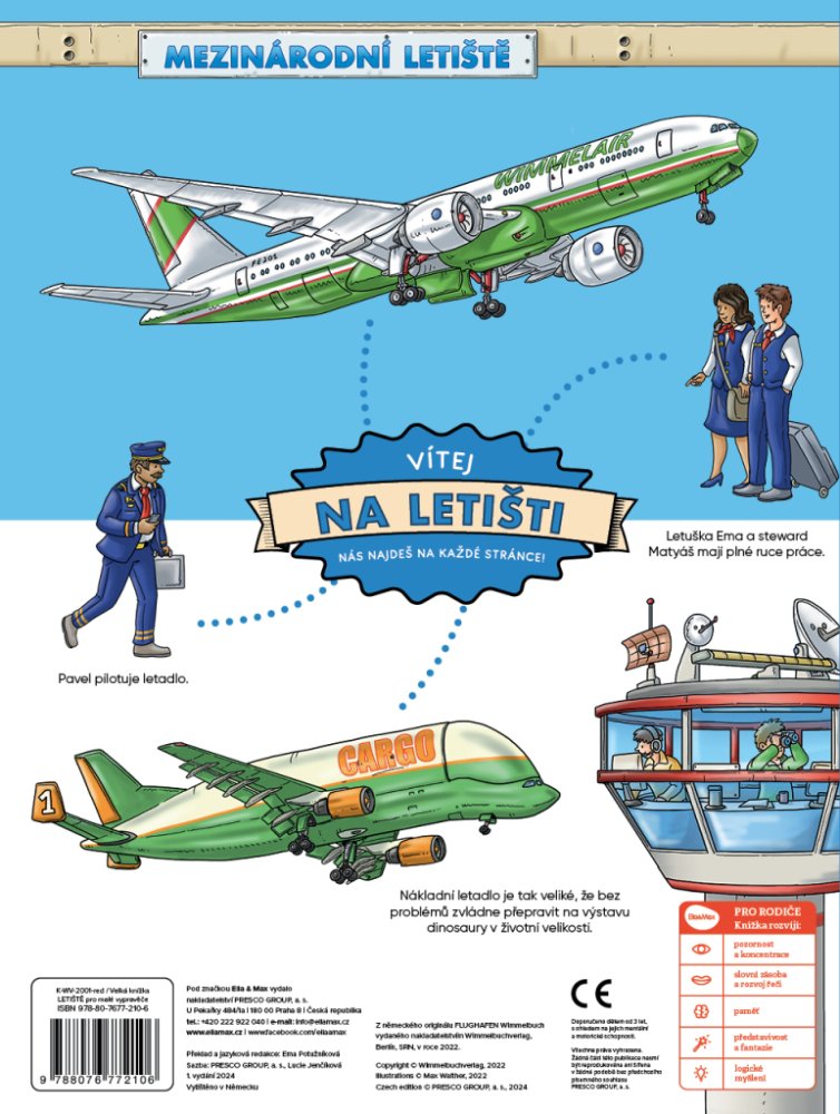 Na letišti se pořád něco děje! Kam se člověk podívá, všude se to hemží lidmi, kteří tu pracují, ale hlavně těmi, kteří někam cestují. Na stránkách téhle bohatě ilustrované knížky můžete sledovat příběhy některých z nich a doprovázet je na jejich cestách. Dozvíte se přitom, jak to chodí na letišti, prozkoumáte nejrůznější letadla a jedním z nich vzlétnete až do oblak. Nahlédnete do pilotní kabiny, do zavazadlového prostoru, ale i do jiných zákoutí, která obvykle zůstávají našim zraků skrytá. A svou dobrodružnou cestu zakončíte – jak jinak – na dovolené u moře!