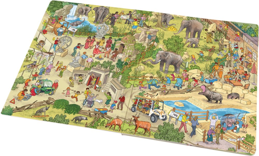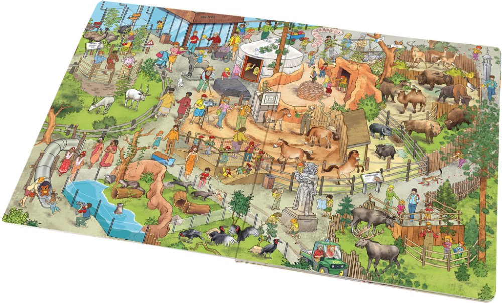 Prozkoumáte-li tuhle speciální knížku plnou krásných, detailně propracovaných celostránkových ilustrací důkladněji, zjistíte, že ukrývá spousty příběhů. Ty se odehrávají nejen na jednotlivých stranách, ale i v průběhu celé knihy. A mnohé další si děti jistě vymyslí samy! Díky kreativní práci s knížkou jsou vedeny k přemýšlení o tom, co „čtou“, rozvíjejí svou slovní zásobu, předčtenářské dovednosti a rovněž si tříbí paměť, pozornost a logické myšlení. Velká obrázková knížka ZOO Praha pro malé vypravěče vznikla ve spolupráci s pražskou zoo a malí návštěvníci v ní poznají jednotlivé expozice, místní zvířecí obyvatele i personál, který o ně pečuje.